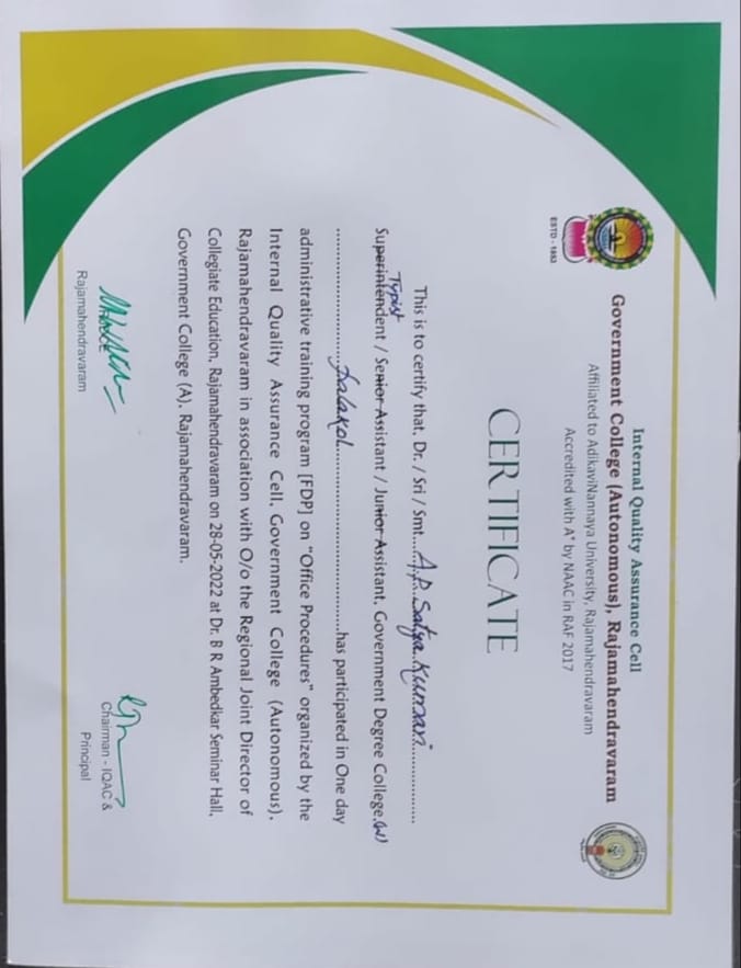 A P Satya Kumari | 0431387 | Typist | MCom |