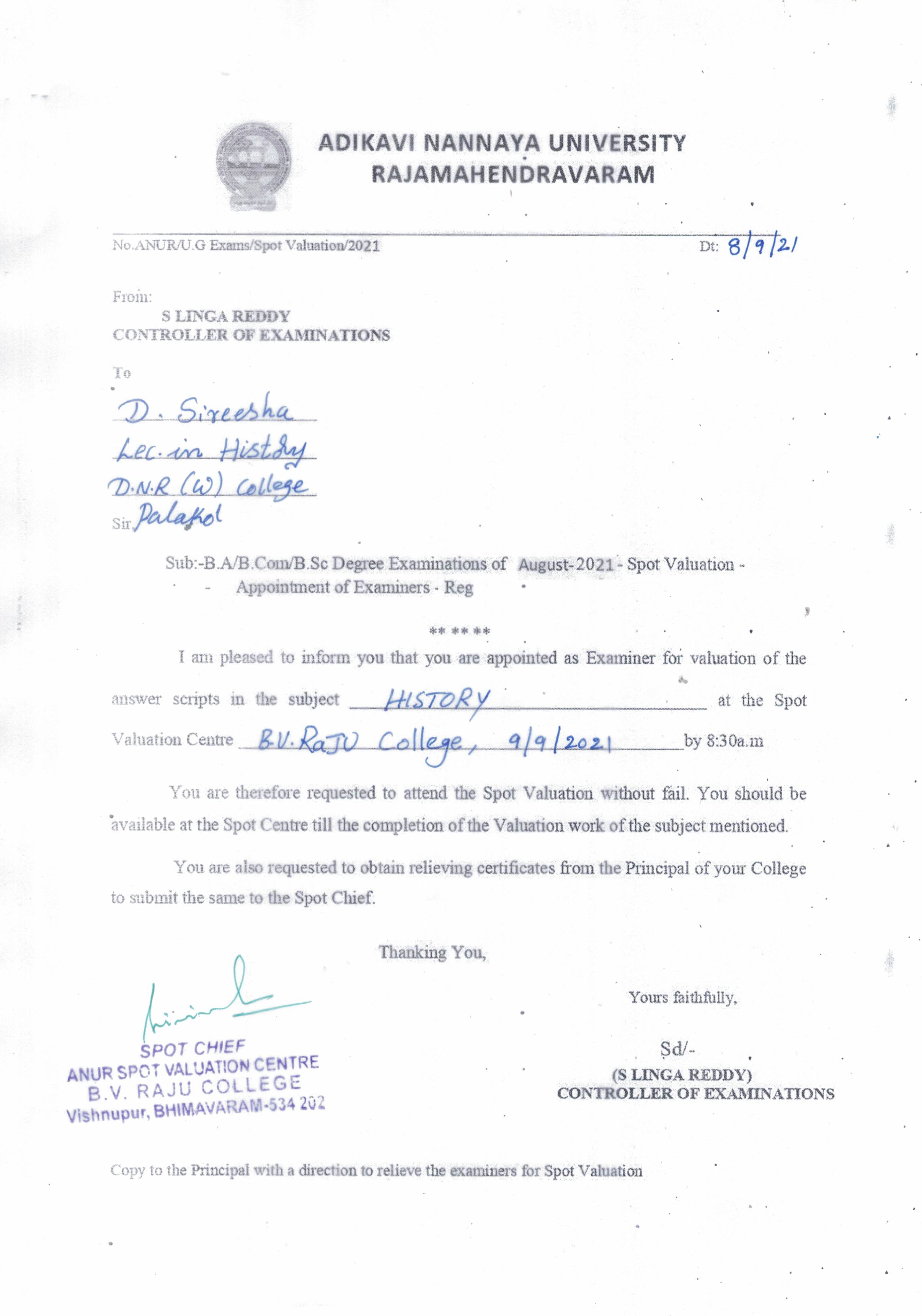 Practical examination Appointment order to Sri ASNM GDC Palakol- Click Here